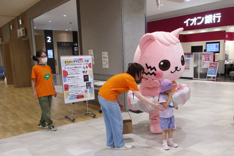 2025年8月31日、イオンモール土岐において、「まちかどサイエンス・ラボ」を開催しました。この企画は、街中で開催する、ワークショップ(理科工作教室)をメインとしたイベントで、子供たちを含め広く一般の方に科学の不思議、楽しさに触れてもらうことを目的としています。今回が第3回目となる、まちかどサイエンス・ラボは、夏休みに最も子供たちが集まる場所の一つであるショッピングモールを開催場所としました。実際、多くの子供連れのご家族が訪れていました。