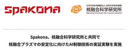 株式会社Spakona、核融合科学研究所と共同で核融合プラズマの安定化に向けたAI制御技術の実証実験を実施(釼持 尚輝准教授ら)